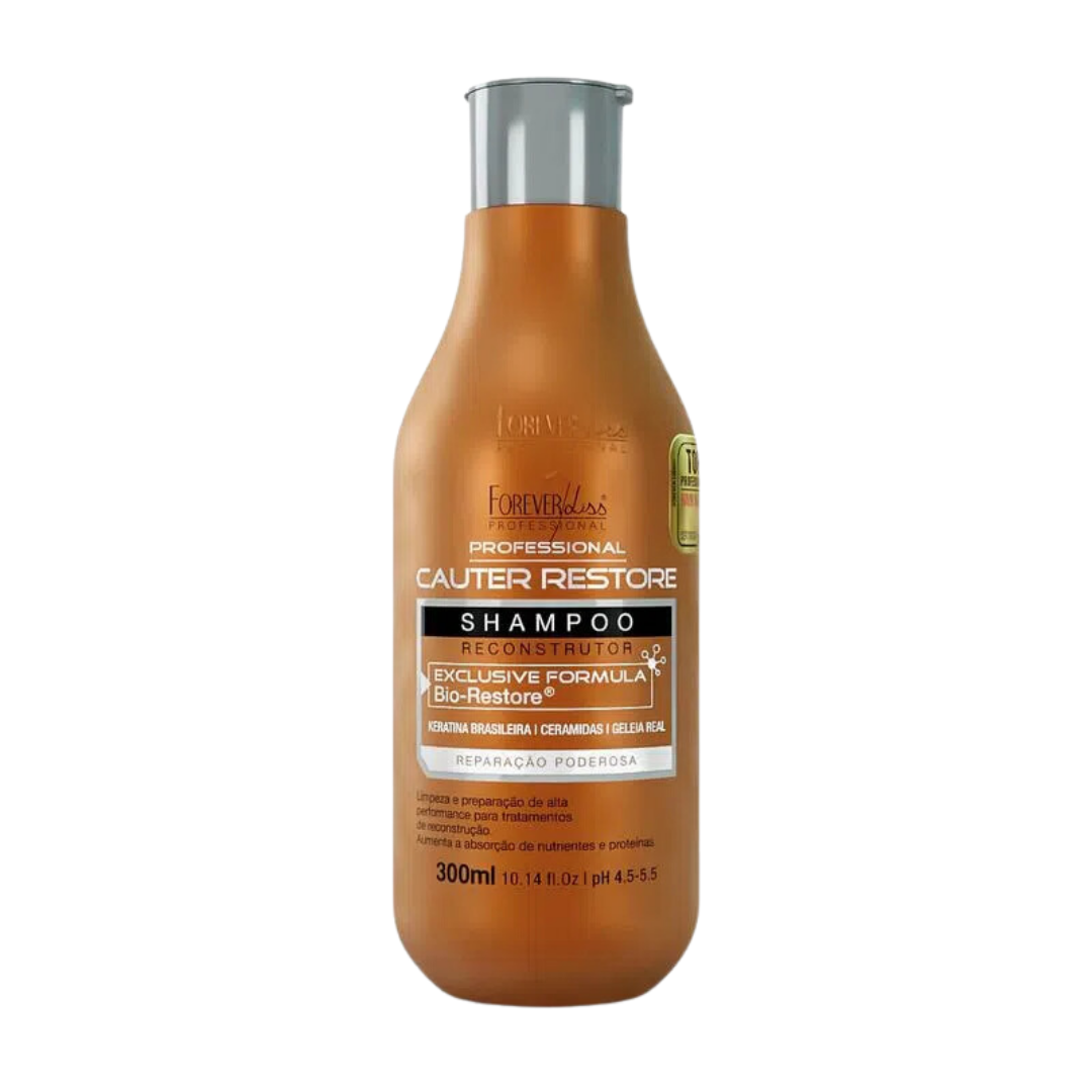 O Shampoo Cauterização Cauter Restore Forever Liss 300ml promove limpeza suave com preparação de alta performance, removendo impurezas e reestruturando toda a fibra capilar de forma intensa em cabelos ressecados e fragilizados por química.